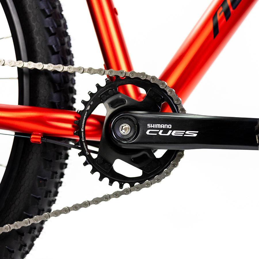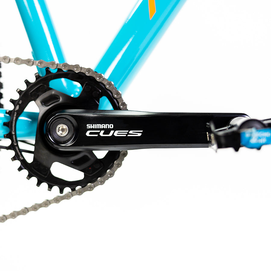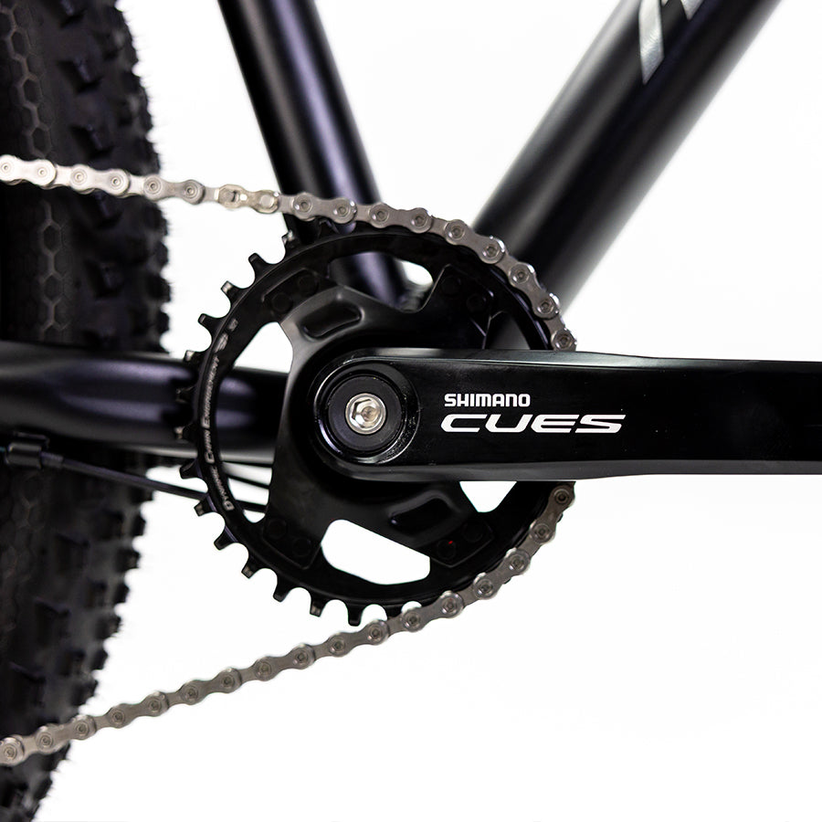 Equipada con transmisión Shimano CUES de 10 velocidades y un cassette 11-48T, tendrás la versatilidad necesaria para conquistar subidas desafiantes y descensos emocionantes. Sus frenos de disco hidráulicos Shimano BR-MT200 con rotores de 160 y 180 mm garantizan un frenado seguro y potente en cualquier condición.