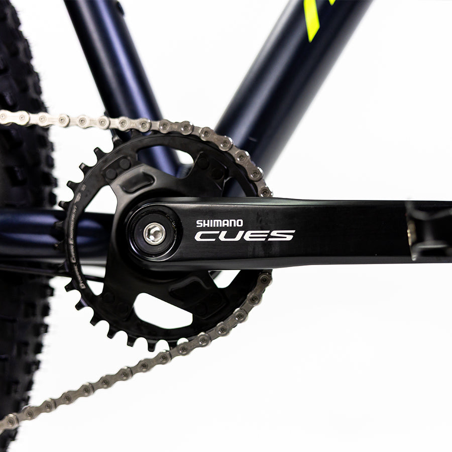 Con la transmisión Shimano CUES de 11 velocidades, disfrutarás de cambios suaves y exactos, ideales para superar cualquier tipo de terreno. Sus frenos de disco hidráulicos Shimano BR-MT200 con rotores de 160 y 180 mm ofrecen seguridad y potencia de frenado en todo momento.