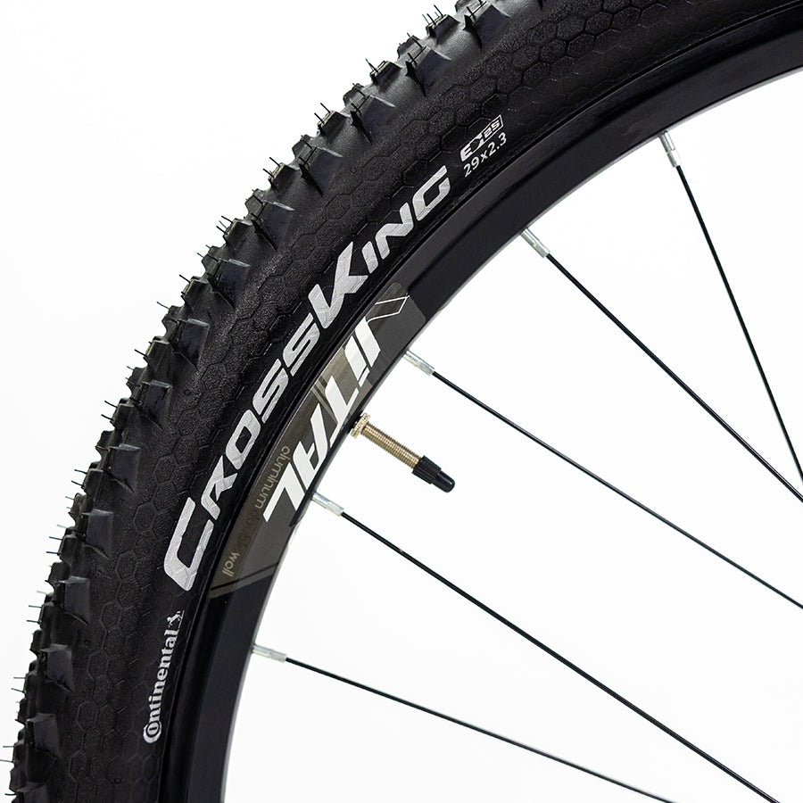 Las llantas Continental Cross King 29x2.30” montadas en rines de aluminio doble pared ofrecen tracción y velocidad.